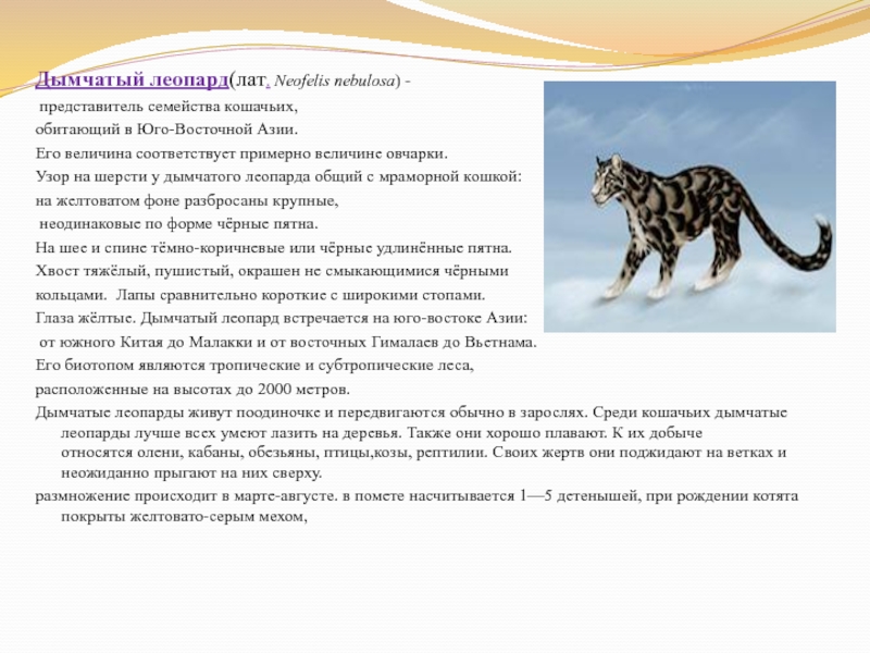 Слайд 8Дымчатый леопард(лат. Neofelis nebulosa) -