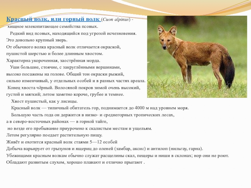 Слайд 7Красный волк, или горный волк (Cuon alpinus) -