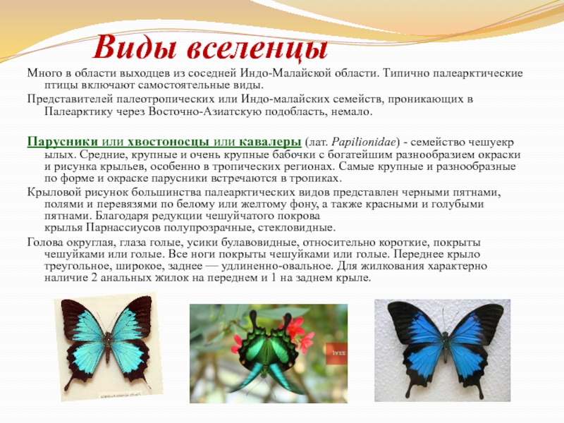 Представителей палеотропических или Индо-малайских семейств, проникающих в Палеарктику через Восточно-Азиатскую подобласть, немало.