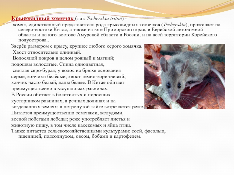 Также питается сельскохозяйственными культурами: соей, фасолью,пшеницей, подсолнухом, овсом, бобами и картофелем.