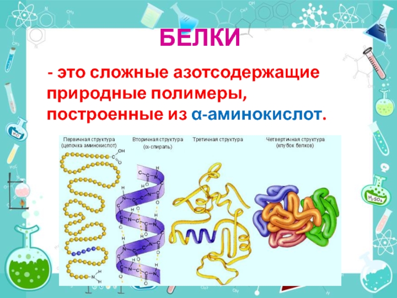 это сложные природные азотсодержащие полимеры, построенные из остатков α-аминокислот.