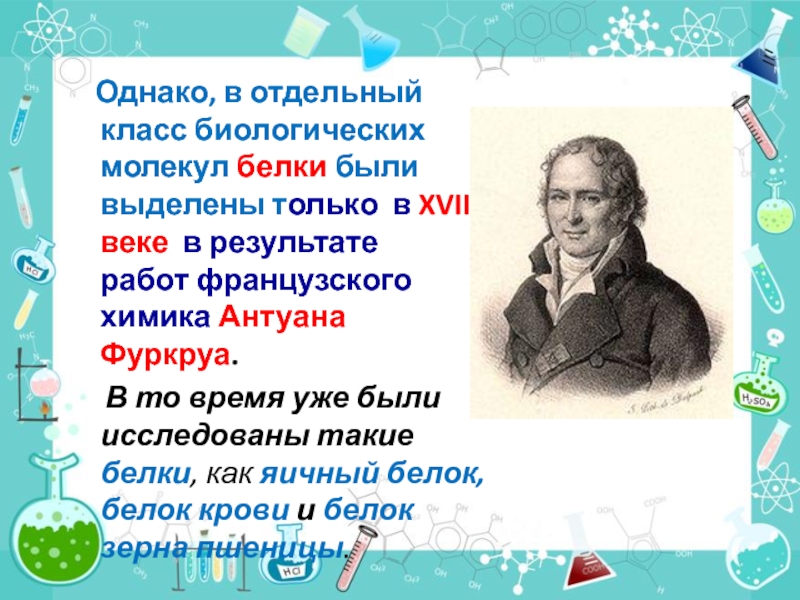 Слайд 6 Однако, в отдельный класс биологических молекул белки были