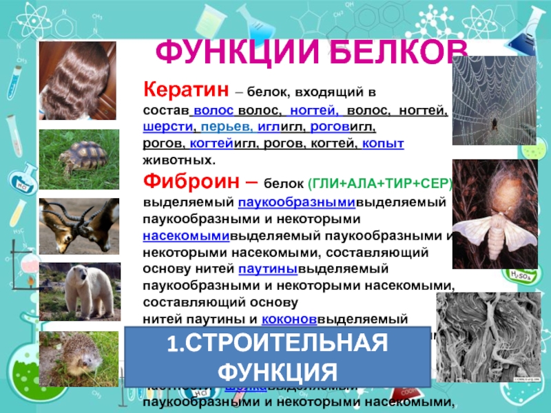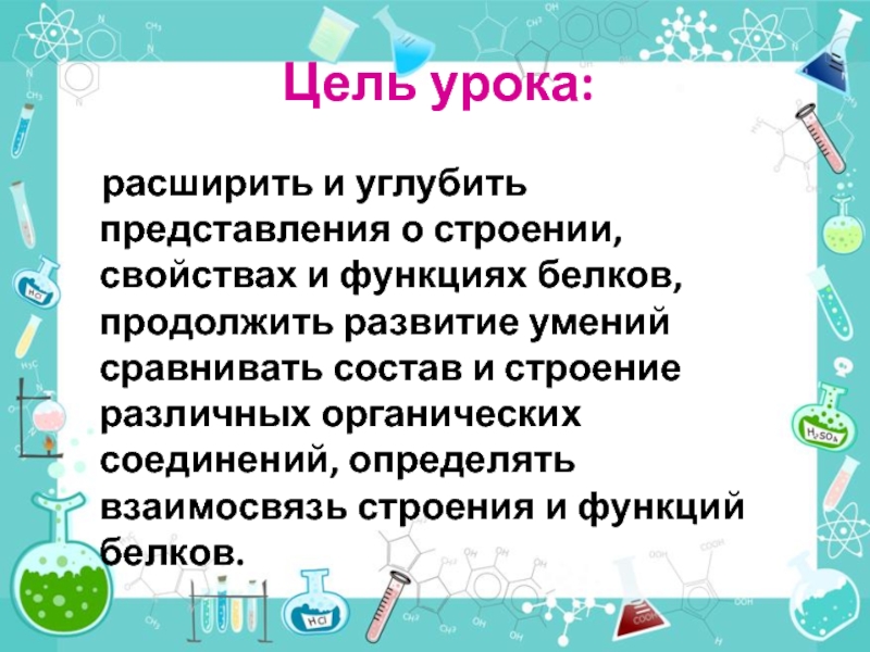 функциях белков, продолжить развитие умений сравнивать состав и строение различных органических соединений, определять взаимосвязь строения и функций белков.