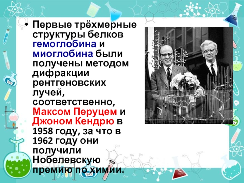 рентгеновских лучей, соответственно, Максом Перуцем и Джоном Кендрю в 1958 году, за что в 1962 году они получили Нобелевскую премию по химии.