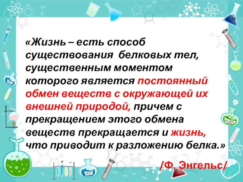 Слайд 2«Жизнь – есть способ существования белковых тел, существенным моментом которого является