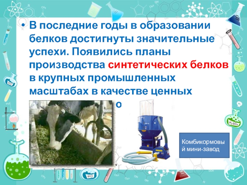 производства синтетических белков в крупных промышленных масштабах в качестве ценных кормов для животных
