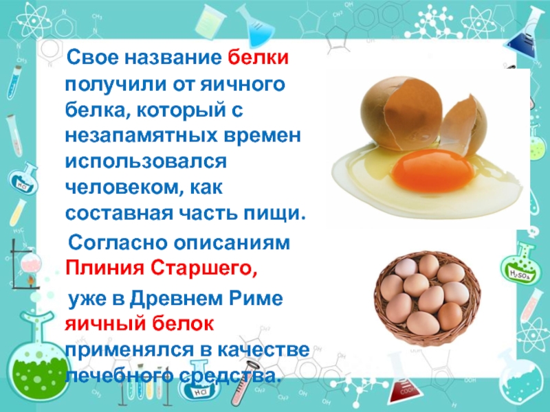 Слайд 5 Свое название белки получили от яичного белка, который с