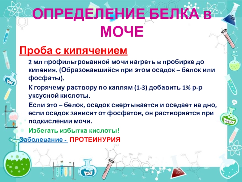 Слайд 58ОПРЕДЕЛЕНИЕ БЕЛКА в МОЧЕ