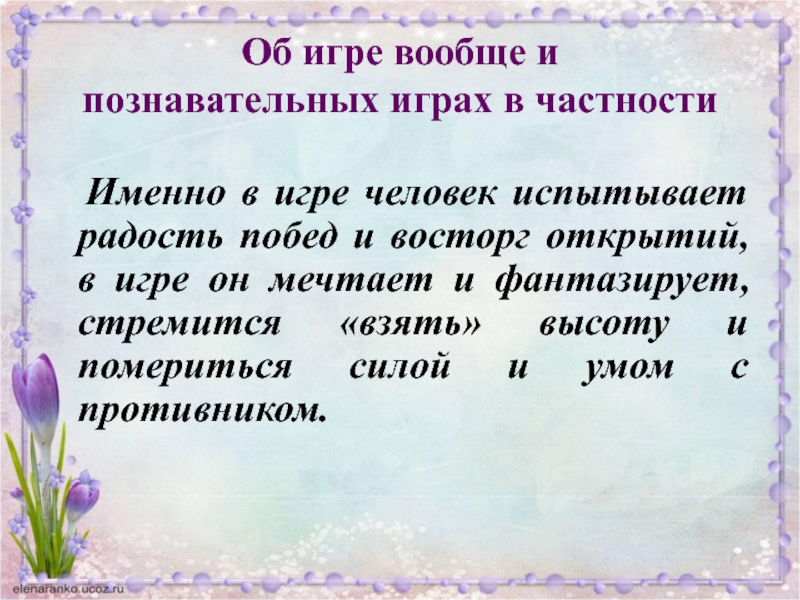 Об игре вообще и  познавательных играх в частности  Именно в игре человек испытывает радость побед
