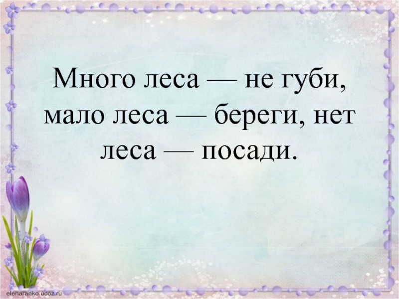 Много леса — не губи, мало леса — береги, нет леса — посади.