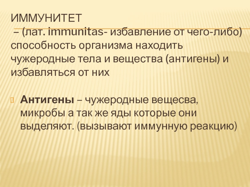 Антигены – чужеродные вещесва, микробы а так же яды которые они выделяют. (вызывают иммунную реакцию)