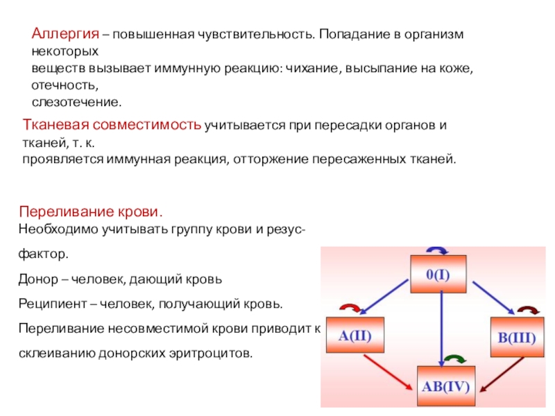 Тканевая совместимость учитывается при пересадки органов и тканей, т. к.