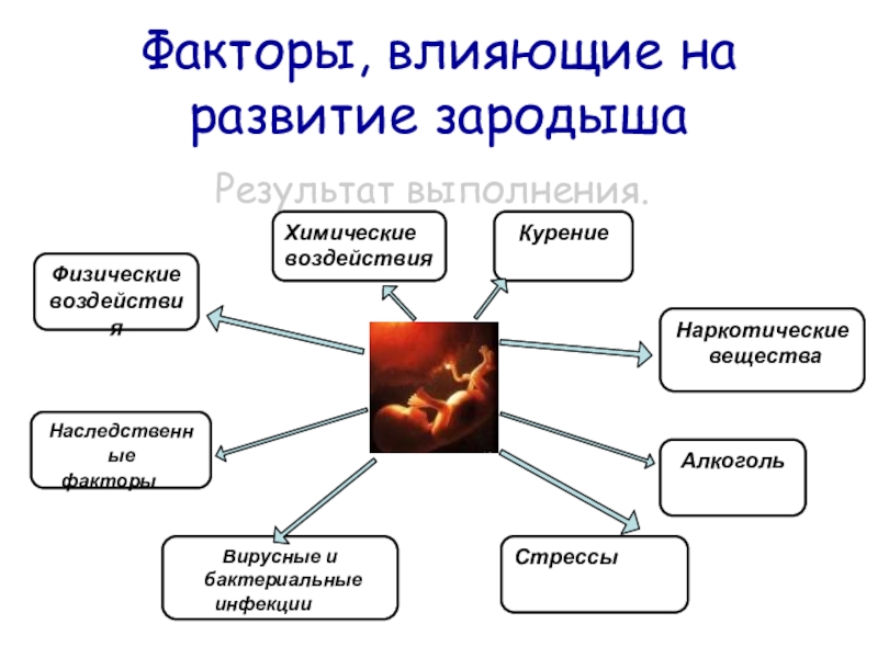 Слайд 24Факторы, влияющие на развитие зародыша