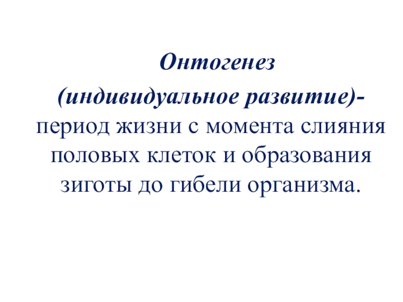слияния половых клеток и образования зиготы до гибели организма.