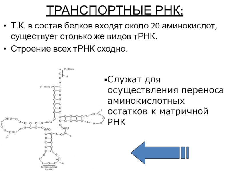 Служат для осуществления переноса аминокислотных остатков к матричной РНК