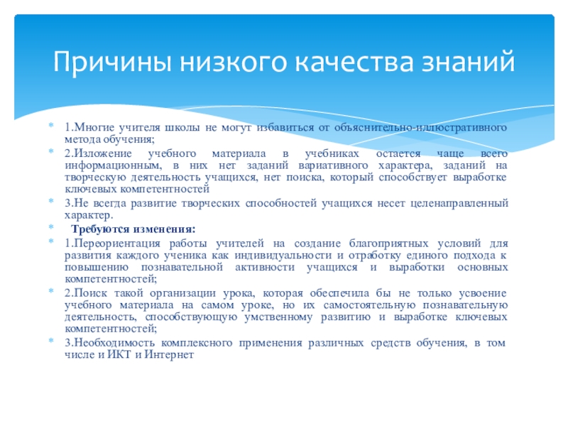 1 Нет компьютера в домашнем пользовании многих учащихся и учителей, время самостоятельных занятий в компьютерных классах отведено далеко не во всех школах.