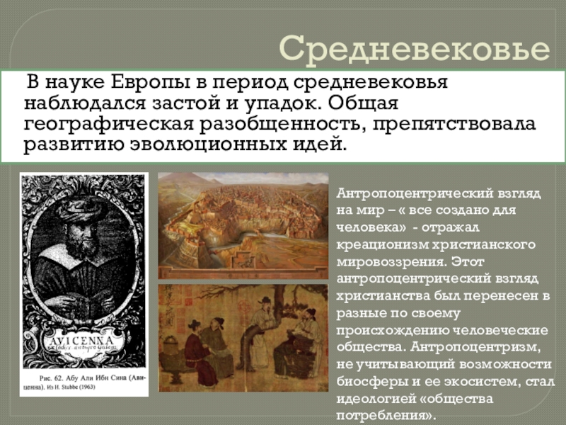 Антропоцентрический взгляд на мир – « все создано для человека» - отражал креационизм христианского мировоззрения. Этот антропоцентрический взгляд христианства был перенесен в разные по своему происхождению человеческие общества. Антропоцентризм, не учитывающий возможности биосферы и ее экосистем, стал идеологией «общества потребления».