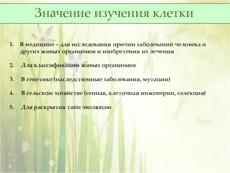 В медицине – для исследования причин заболеваний человека и других живых организмов и изобретения их лечения Для
