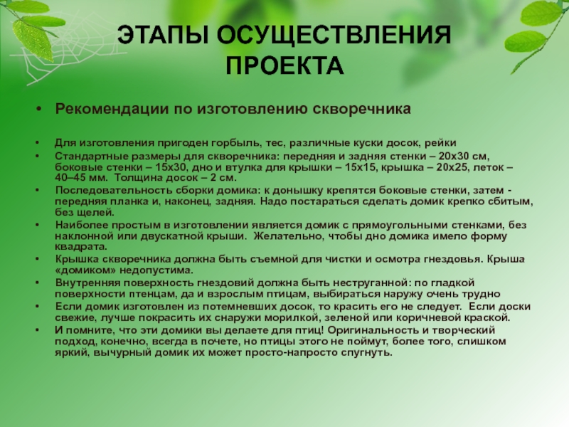 Рекомендации по изготовлению скворечника