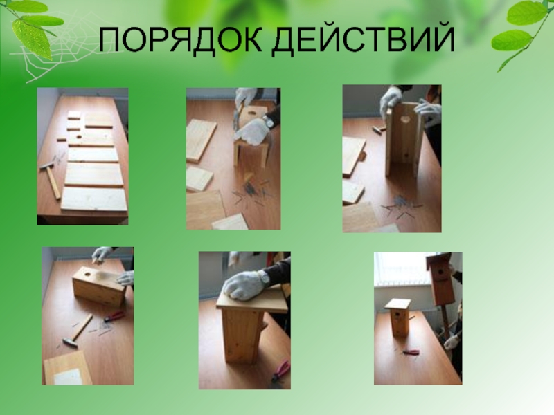 Последовательность сборки домика: к донышку крепятся боковые стенки, затем - передняя планка и, наконец, задняя. Надо постараться сделать домик крепко сбитым, без щелей.