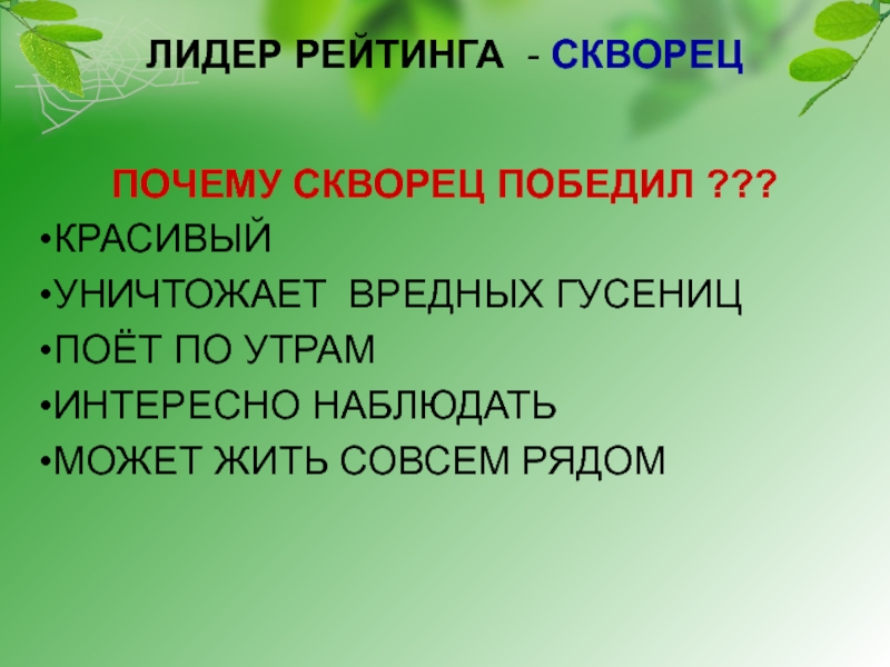ВРЕДИТЕЛЕЙ (ДЯТЛЫ, КУКУШКИ, СКВОРЦЫ)