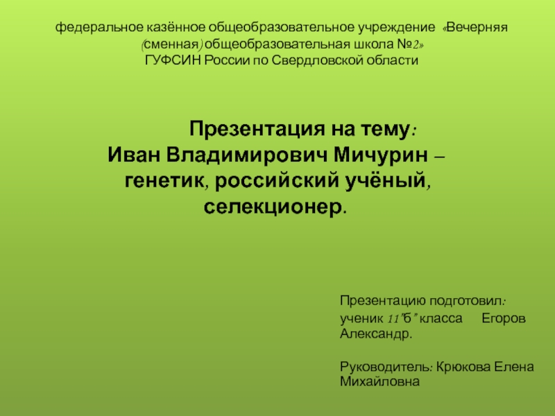 федеральное казённое общеобразовательное учреждение «Вечерняя (сменная) общеобразовательная школа №2»