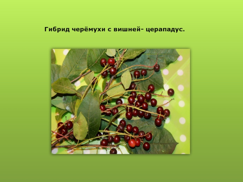 Мичурин скрещивал между собой самые различные растения, например, дыню и тыкву, персик и миндаль, малину и землянику, рябину и грушу. Он ввел в культуру средней полосы России такие виды плодовых деревьев, которые здесь никогда не произрастали, например, абрикос. Он создал новые виды растений, которых ранее не было на земле, и среди них церападус - гибрид степной вишни и японской черемухи.