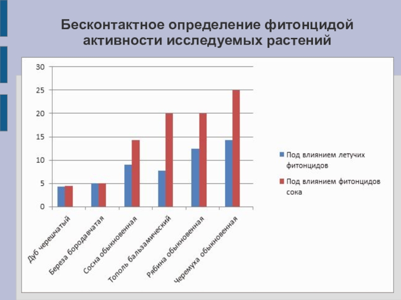 Слайд 16Бесконтактное определение фитонцидой активности исследуемых растений