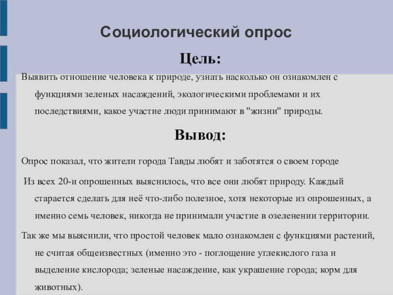 Выявить отношение человека к природе, узнать насколько он ознакомлен с