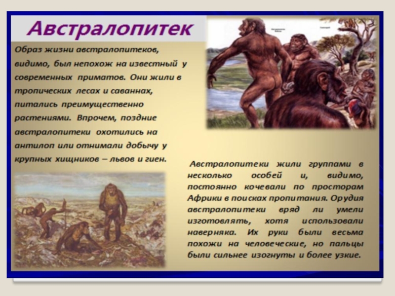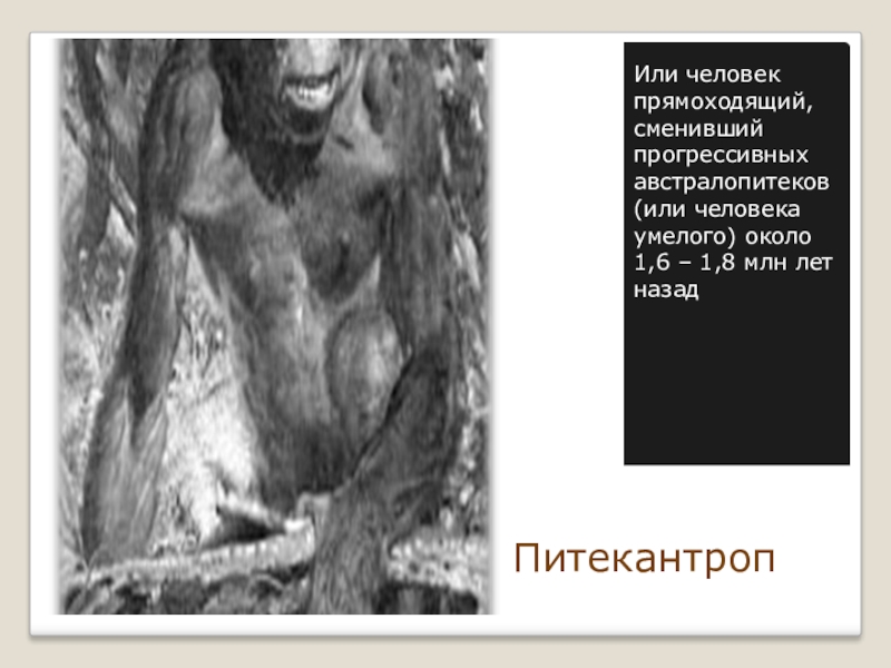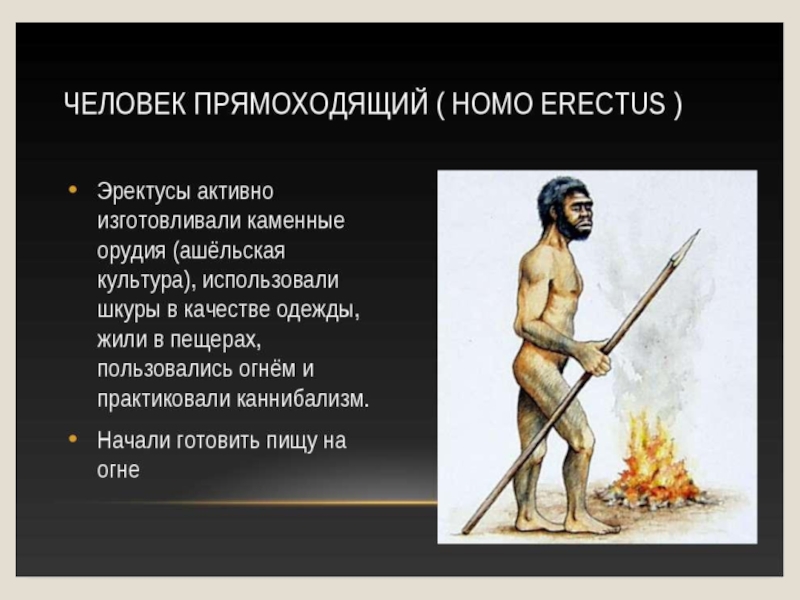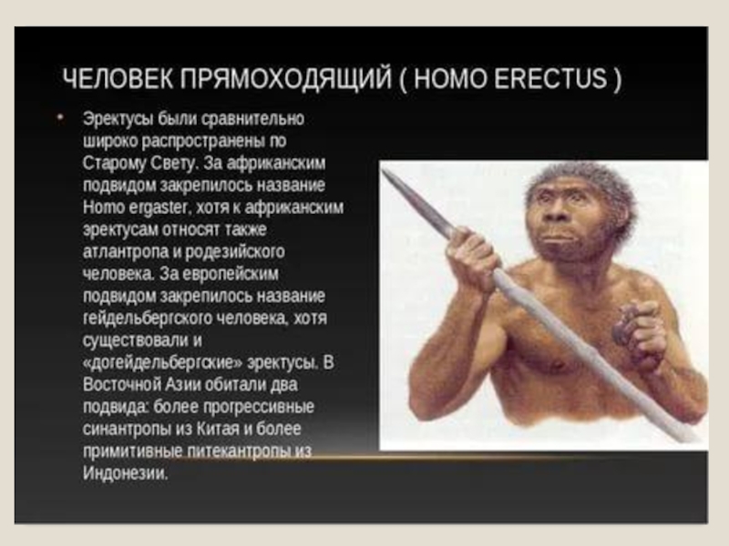 Или человек прямоходящий, сменивший прогрессивных австралопитеков (или человека умелого) около 1,6 – 1,8 млн лет назад