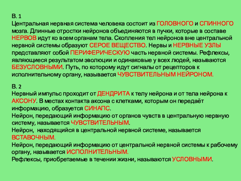 Нейрон, передающий информацию от центральной нервной системы к рабочему органу, называется ИСПОЛНИТЕЛЬНЫМ.