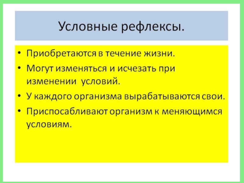 Рефлексы, приобретаемые в течении жизни, называются УСЛОВНЫМИ.
