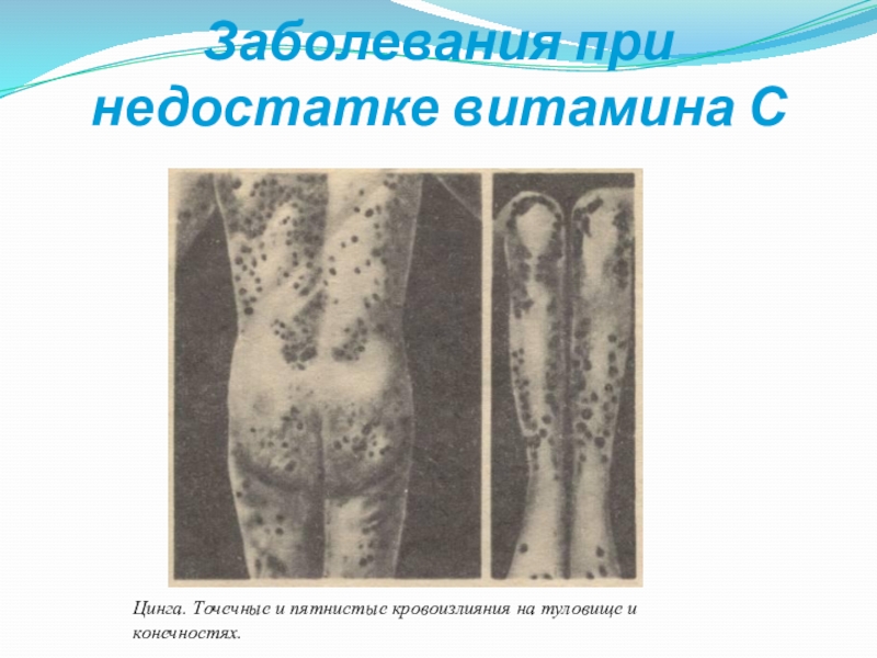 Цинга. Точечные и пятнистые кровоизлияния на туловище