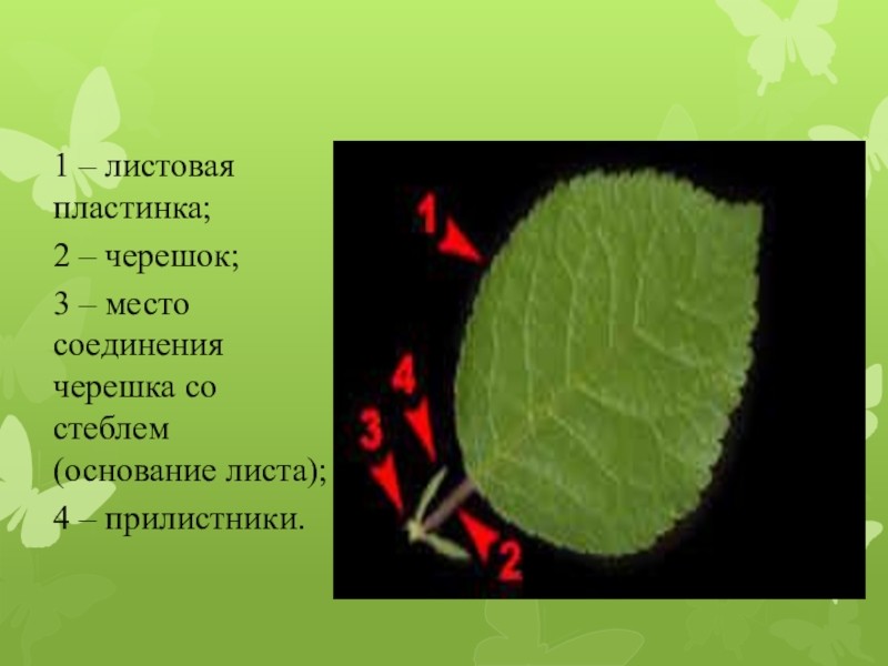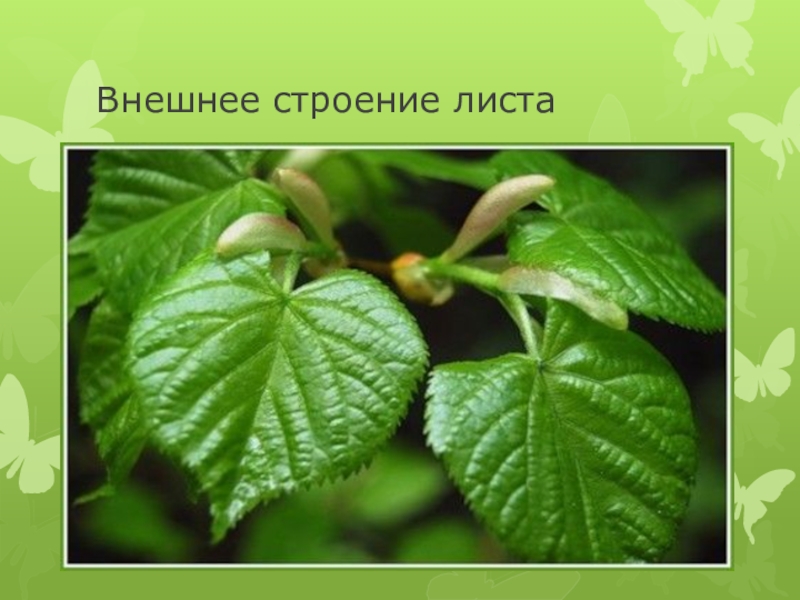 Слайд 1Презентация к уроку «Внешнее строение листа»