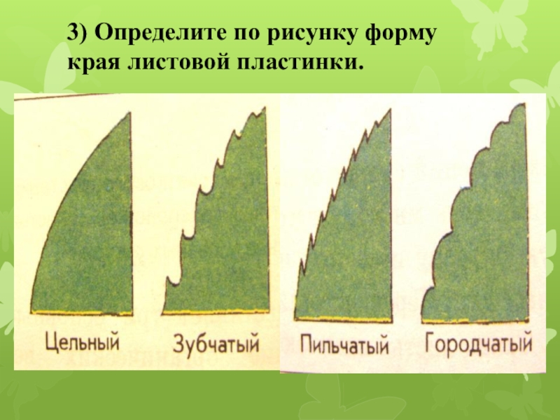 Слайд 113) Определите по рисунку форму края листовой пластинки.