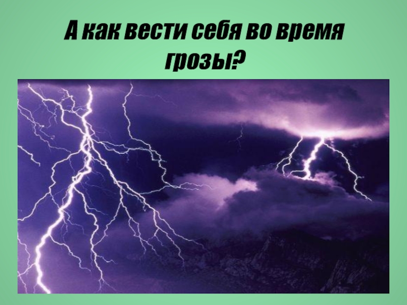 А как вести себя во время грозы?Будьте предельно осторожны; Не оставайтесь на возвышенных местах, в стогах сена,
