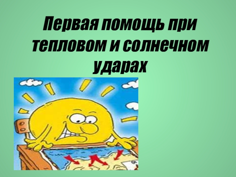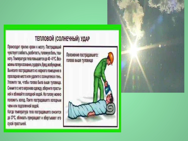 Слайд 4Первая помощь при тепловом и солнечном ударах