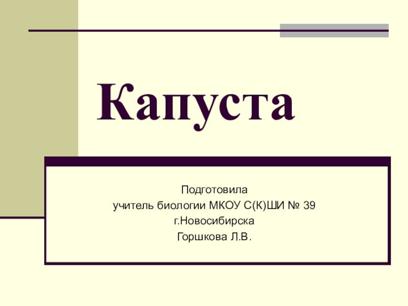 КапустаПодготовила учитель биологии МКОУ С(К)ШИ № 39г.НовосибирскаГоршкова Л.В.