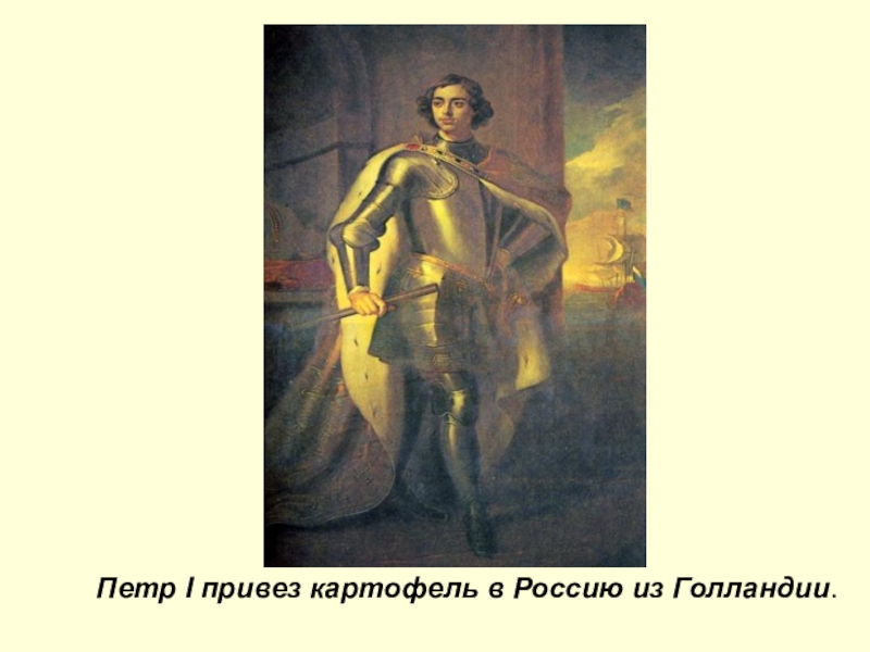 Слайд 13Петр I привез картофель в Россию из Голландии.