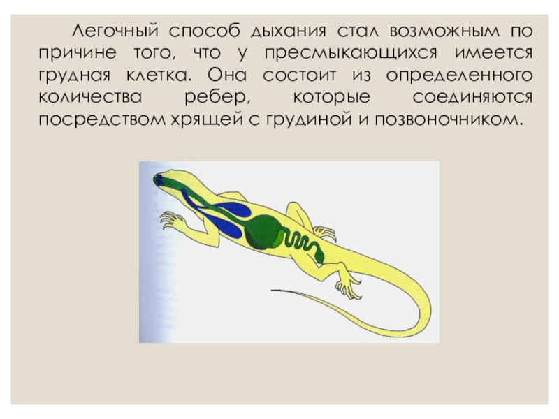 Слайд 6Легочный способ дыхания стал возможным по причине того, что у пресмыкающихся