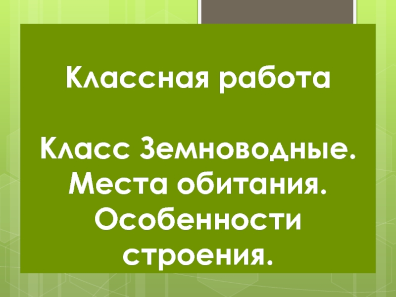 Слайд 1Классная работа Класс Земноводные. Места обитания. Особенности строения.