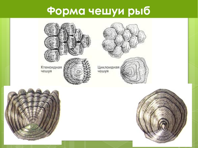 Слайд 14Форма чешуи рыб