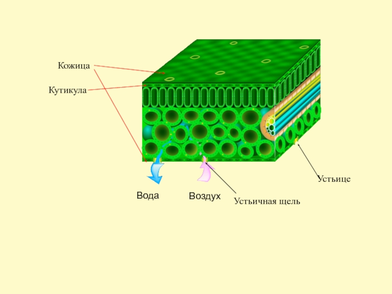 Слайд 7У светолюбивых столбчатые клетки располагаются в несколько рядов, очень много устьиц.