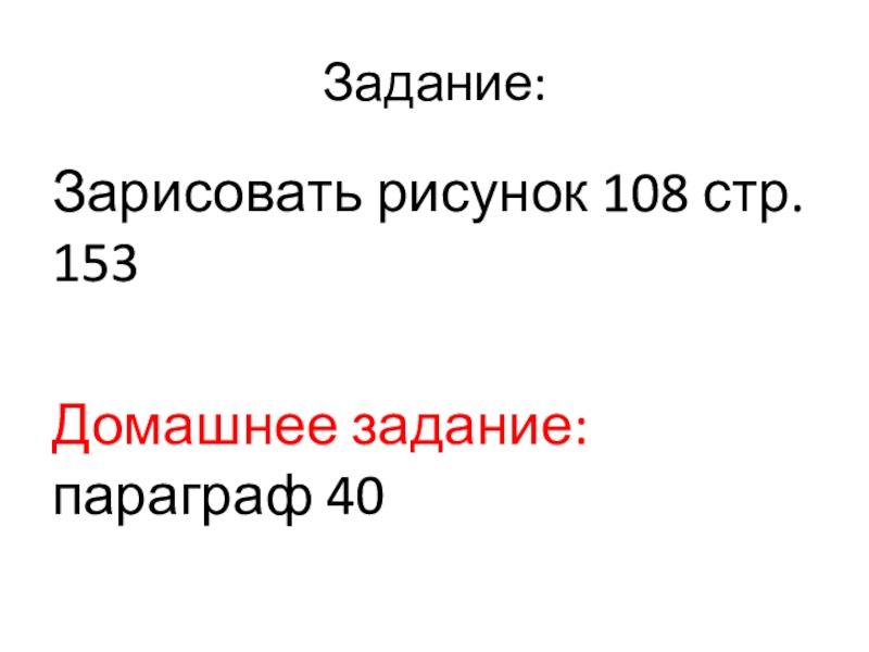 Задание:Зарисовать рисунок 108 стр. 153Домашнее задание: параграф 40