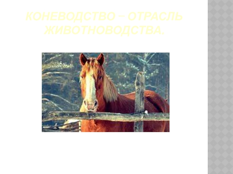 Слайд 9КОНЕВОДСТВО – ОТРАСЛЬ ЖИВОТНОВОДСТВА.