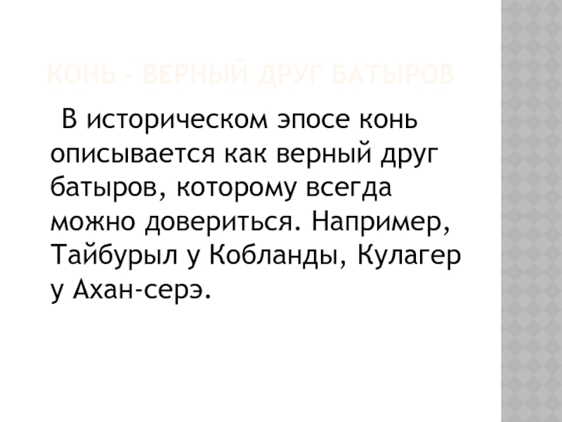 Слайд 8КОНЬ – ВЕРНЫЙ ДРУГ БАТЫРОВ