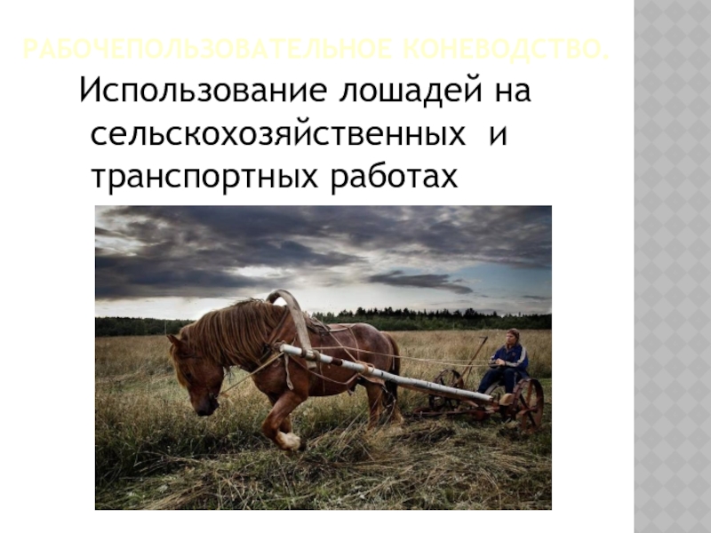 Слайд 23РАБОЧЕПОЛЬЗОВАТЕЛЬНОЕ КОНЕВОДСТВО.