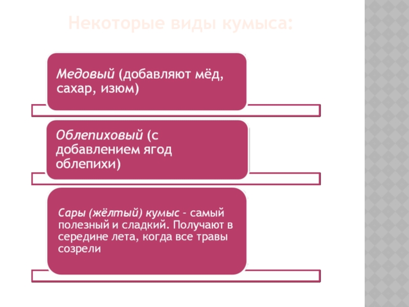 Слайд 25КУМЫС - КИСЛОМОЛОЧНЫЙ НАПИТОК ИЗ КОБЫЛЬЕГО МОЛОКА.