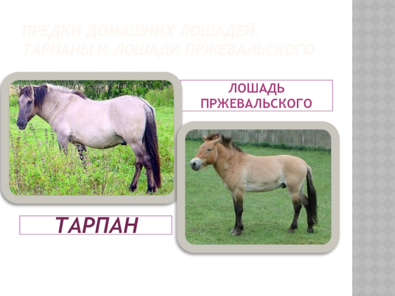 Слайд 4 ПРЕДКИ ДОМАШНИХ ЛОШАДЕЙ: ТАРПАНЫ И ЛОШАДИ ПРЖЕВАЛЬСКОГО