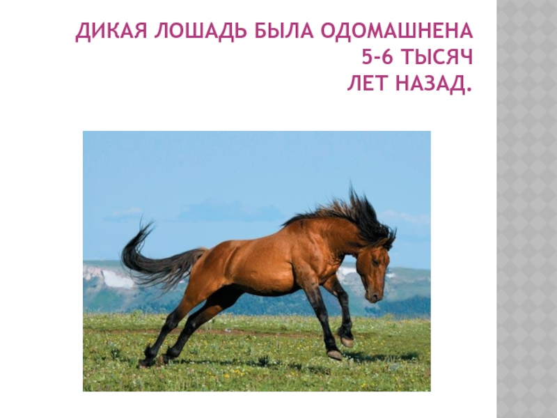 Слайд 3ДИКАЯ ЛОШАДЬ БЫЛА ОДОМАШНЕНА 5-6 ТЫСЯЧ ЛЕТ НАЗАД.